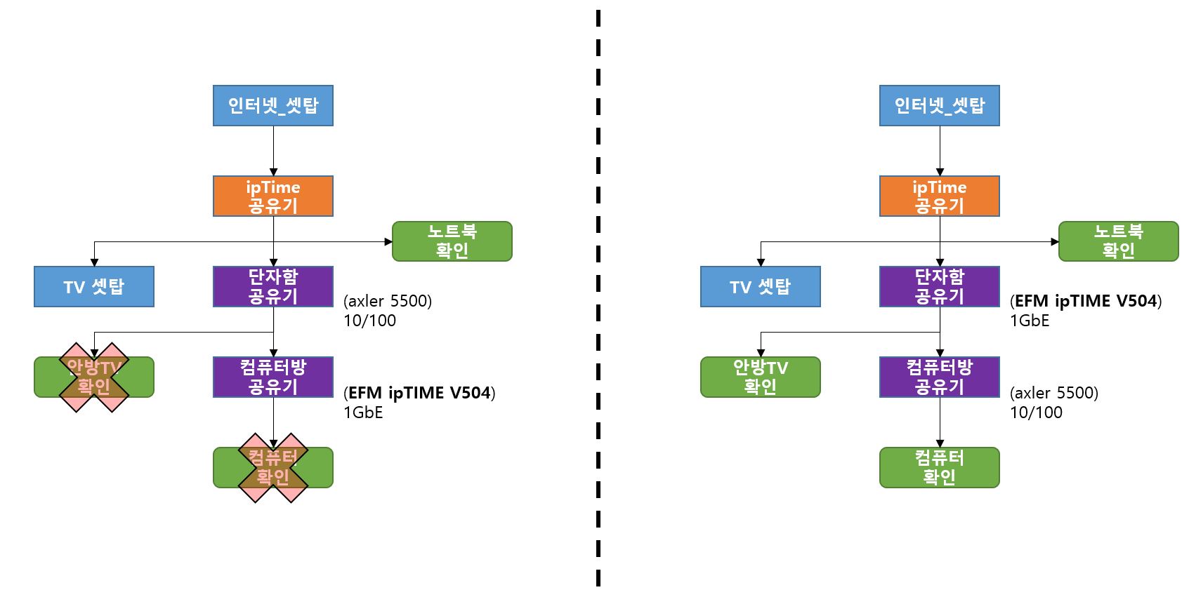 스캔도중 시청 잘안됨. 인터넷 불안정함. 한번은 끊긴적 있음. 공유기가 멈춤